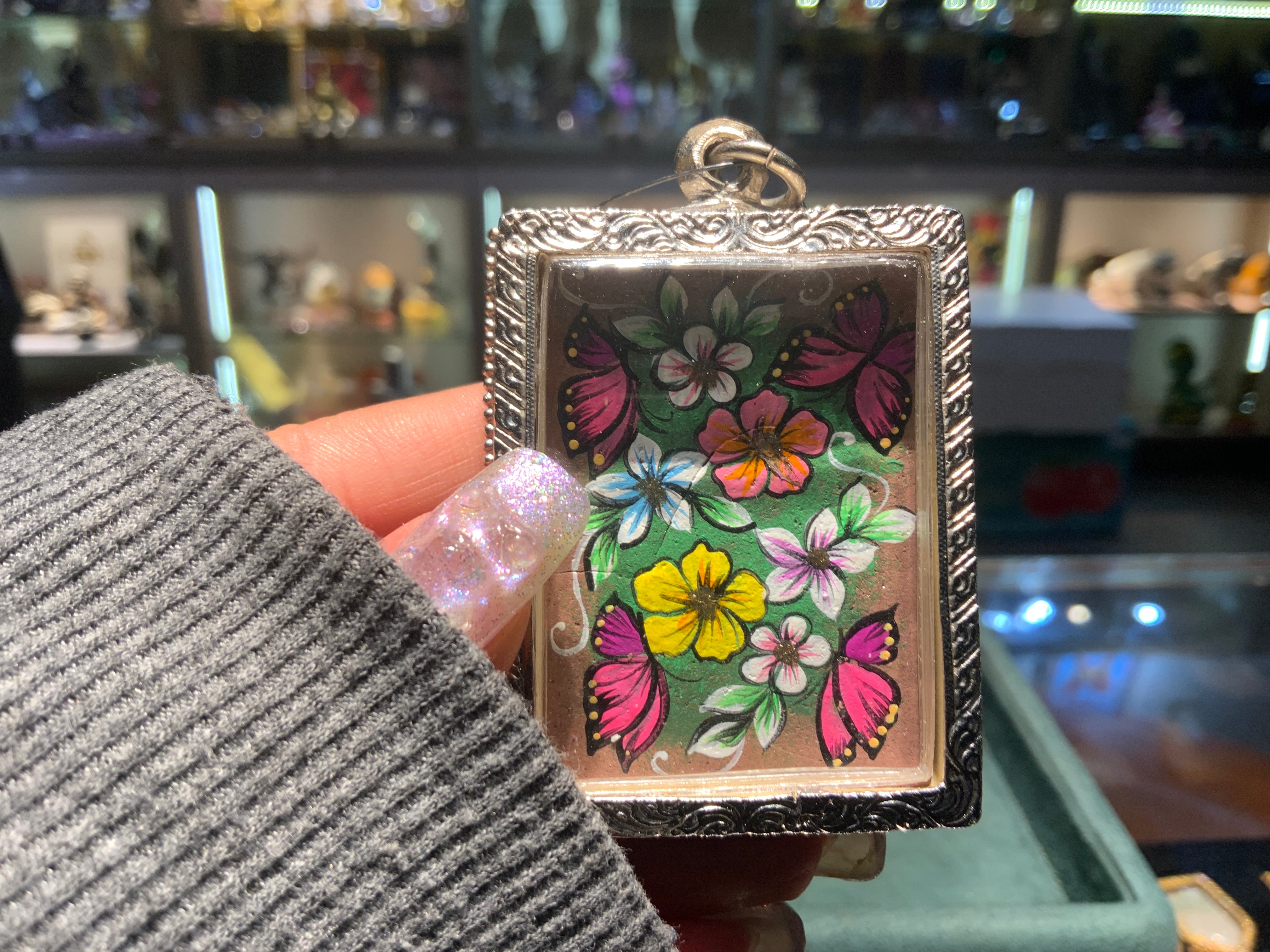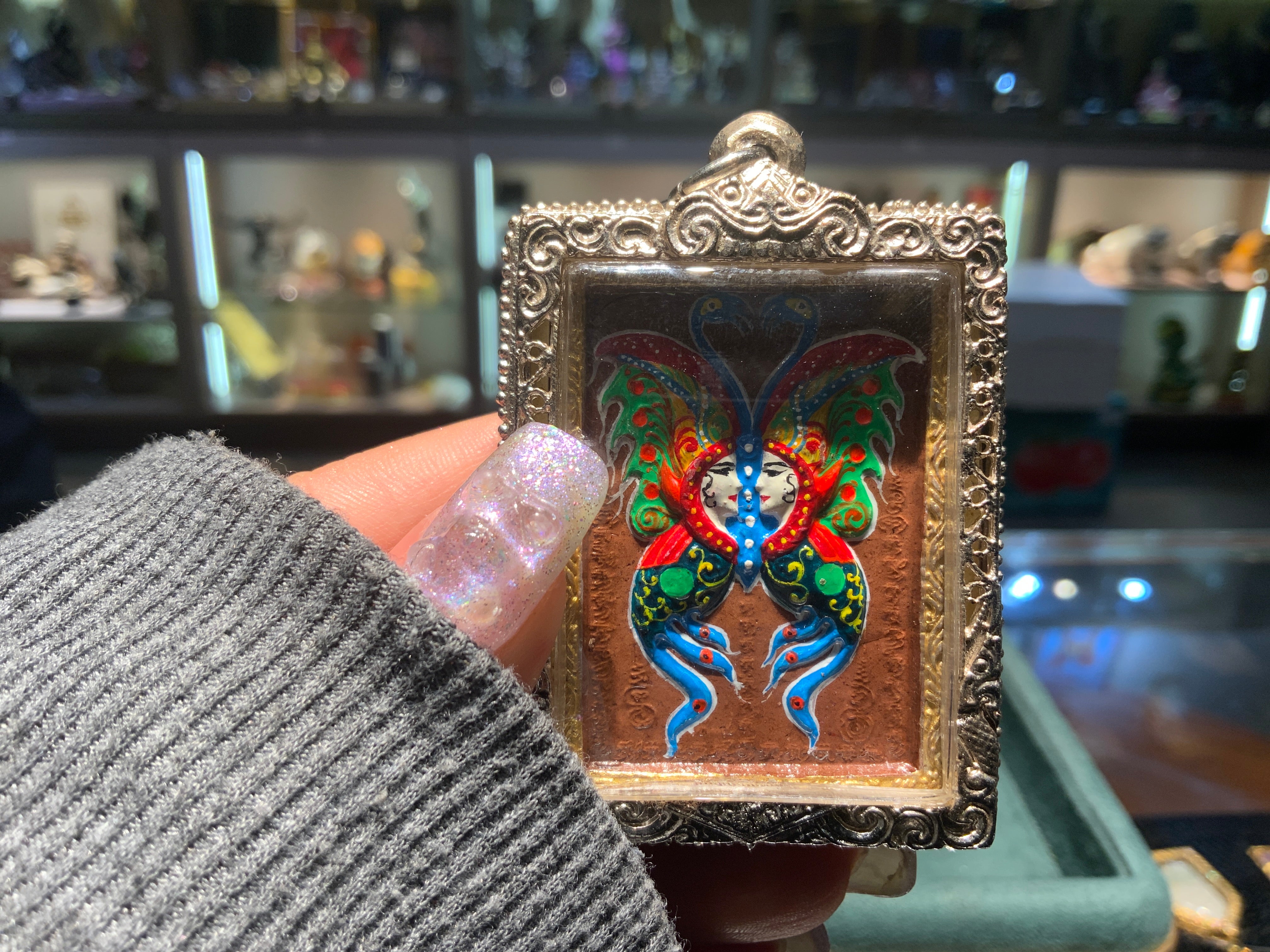 早年甫推出「蝴蝶佛牌」之際,未能被廣泛接受,其主因是從來未有見過顏色鮮豔的蝴蝶法相,而大師解釋,這個蝴蝶法相為一男一女,分別代表印度中最大天神─「柏舌娃」及其妻子「嘉利女神」。而大師以蝴蝶為法相,有一流傳故事,據傳,某一晚上,大師在唸經收集經粉,準備材料時,突然間,房內傳來巨大碰撞聲,大師打開門一看,看到一隻大蝴蝶死在門前。